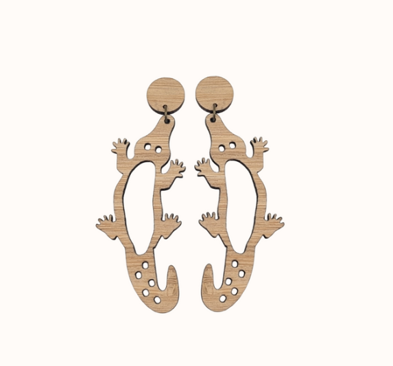 -Bamboo, hypoallergenic titanium studs, suitable for sensitive ears.